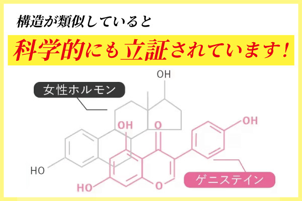 プレエクオールに含まれる「ゲニステイン」はなんと、女性ホルモンとほぼ同じ構造を持ち、